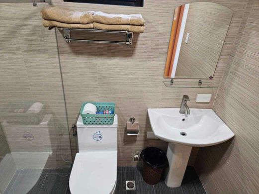 8. 1 toilet and bath (Shower Heater, 5 Towels, 1 Tissue)